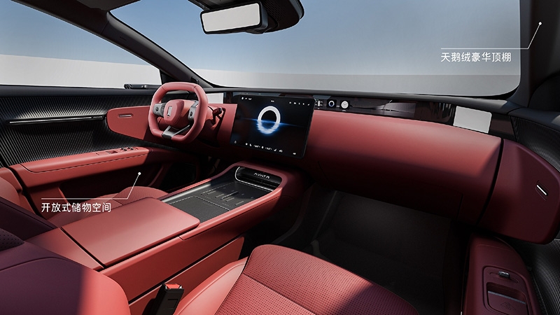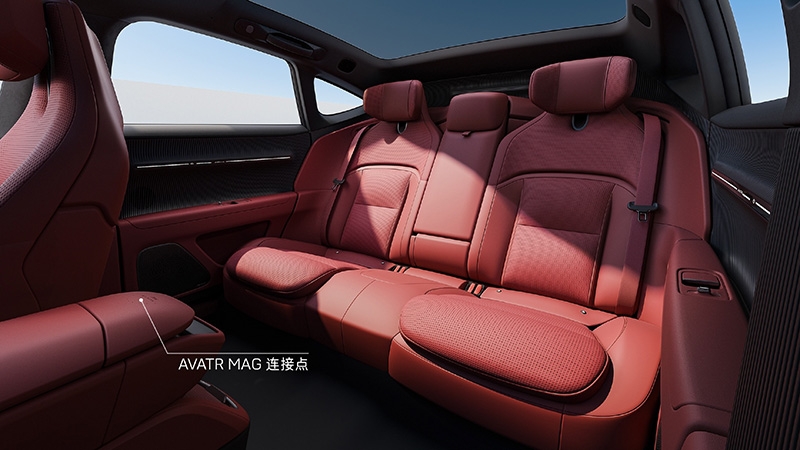 内饰方面,新车继续采用大尺寸中控屏搭配一体式全景宽屏,另外方向盘增加一键语音及Boost一键加速按键。门把手提供车窗开关按键及车内紧急解锁手柄,后排增加AVATR MAG连接点。