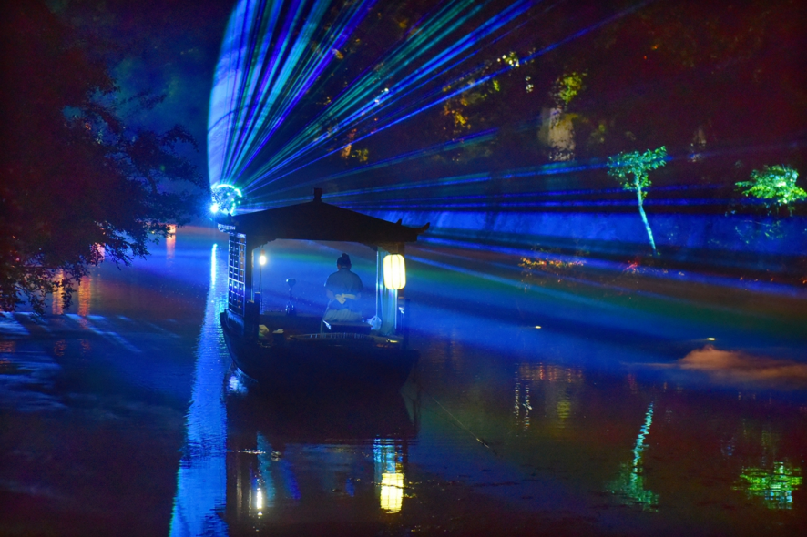 夜幕降临,迎来本次活动压轴体验——趵突泉沉浸式夜游《趵突夜画》。作为济南泉水文化创新夜游项目,《趵突夜画》自2025年10月推出以来,以“历史人物活化+沉浸式演艺”为核心,深度融合李清照、辛弃疾“二安”文化与泉水文脉,借助前沿光影科技、舞蹈、民乐、诗词吟诵、NPC互动等多元形式,打造“可赏、可游、可听、可感”的立体文化体验空间。