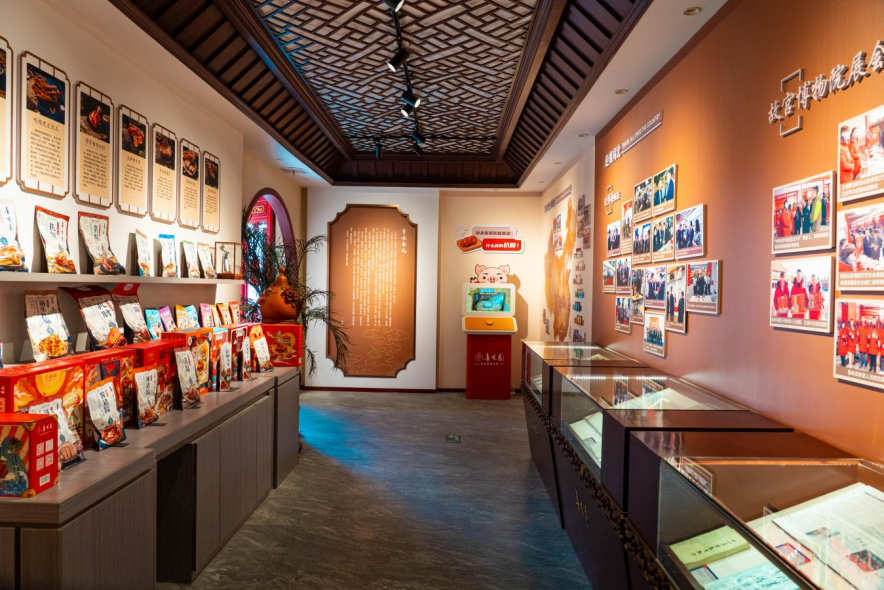 本次巡访首站走进鲁味斋非遗工坊,开启一场百年非遗寻根之旅。作为始创于1927年的中华老字号、山东省非物质文化遗产,鲁味斋历经三代传承,以扒蹄、扒鸡等卤味美食享誉泉城,书写了一段“老汤守正、匠心传味”的传奇。在非遗工坊内,历史传承展区、非遗技艺展区、原料展示区逐一呈现,老照片、老账本、传统卤制工具静静诉说着百年历程;数字化展示、裸眼3D投影、沉浸式气味体验等“黑科技”,生动还原“一炸、二炖、三闷、四泡”的扒蹄非遗制作工序,让匠心工艺可感可触;文创区里的扒蹄造型公交卡、创意文创周边将传统卤味与现代潮流融合,吸引达人们纷纷打卡拍摄。鲁味斋用匠心守护非遗技艺,以创新拥抱年轻市场,成为济南老字号活态传承的生动典范。